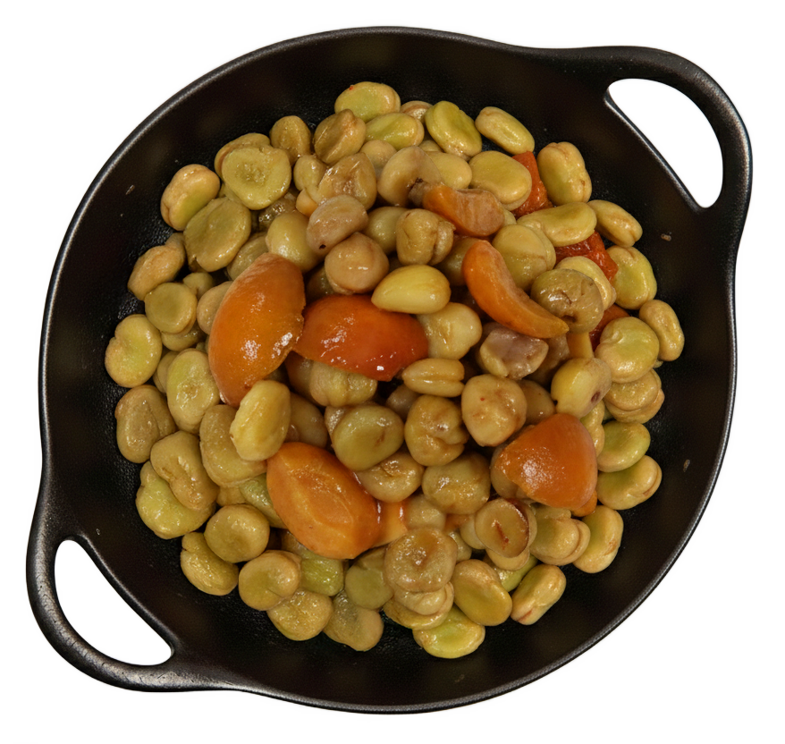 Френски специалитет от цели сготвени кестени и сочни кайсии, обогатен с крем от кестени, балсамов оцет и фини подправки. Комбинацията между сладостта на кестените, леката киселинност на кайсията и сиропирания сос придава балансиран и изискан вкус. Подходящ продукт за професионална кухня – като гарнитура към месо и птици или като елемент в авторски ястия.