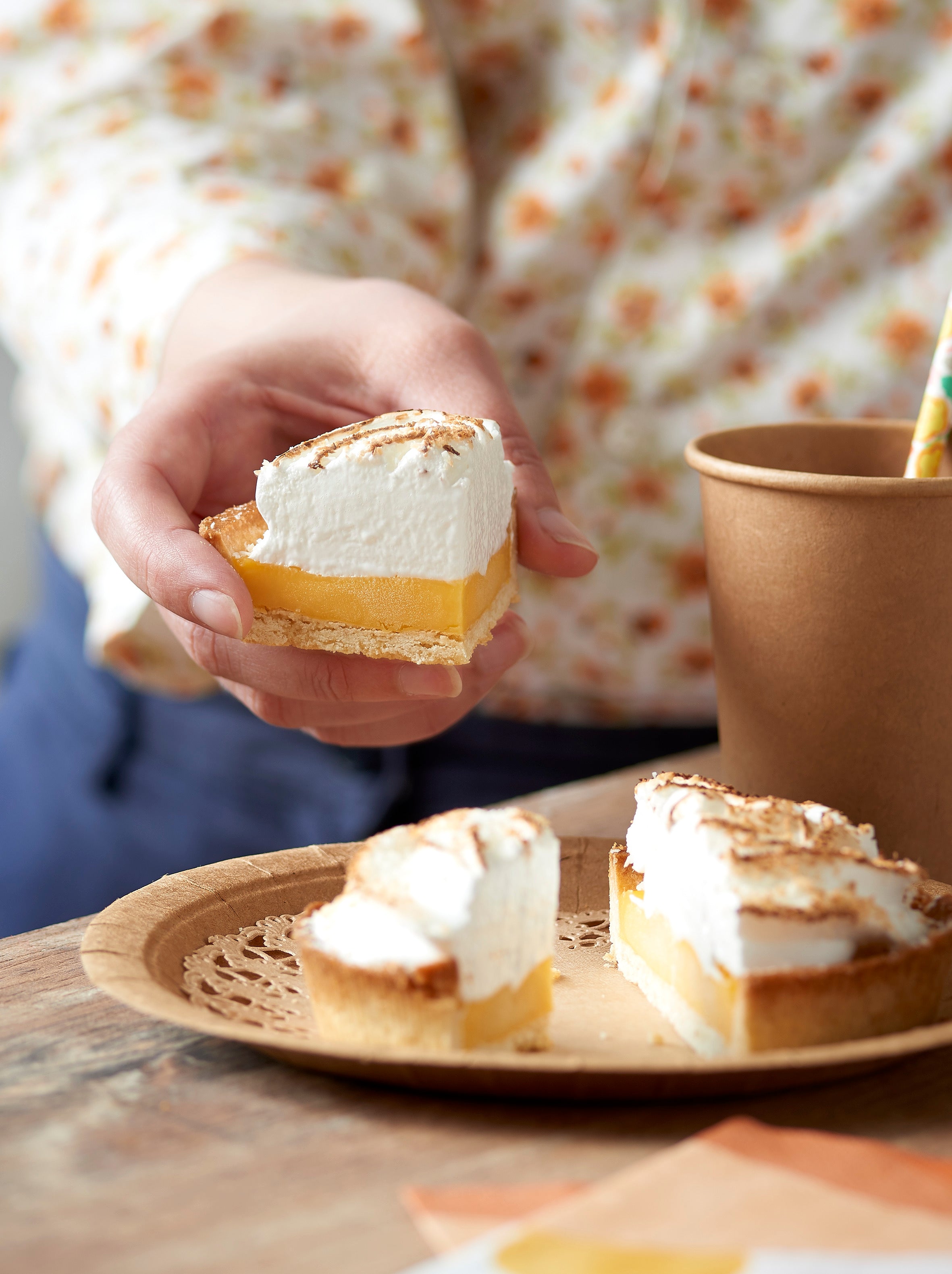 Фина тарталета от маслено тесто, с пълнеж от нежен крем с маракуя и пухкав кокосов меренг, запечен до златисто.