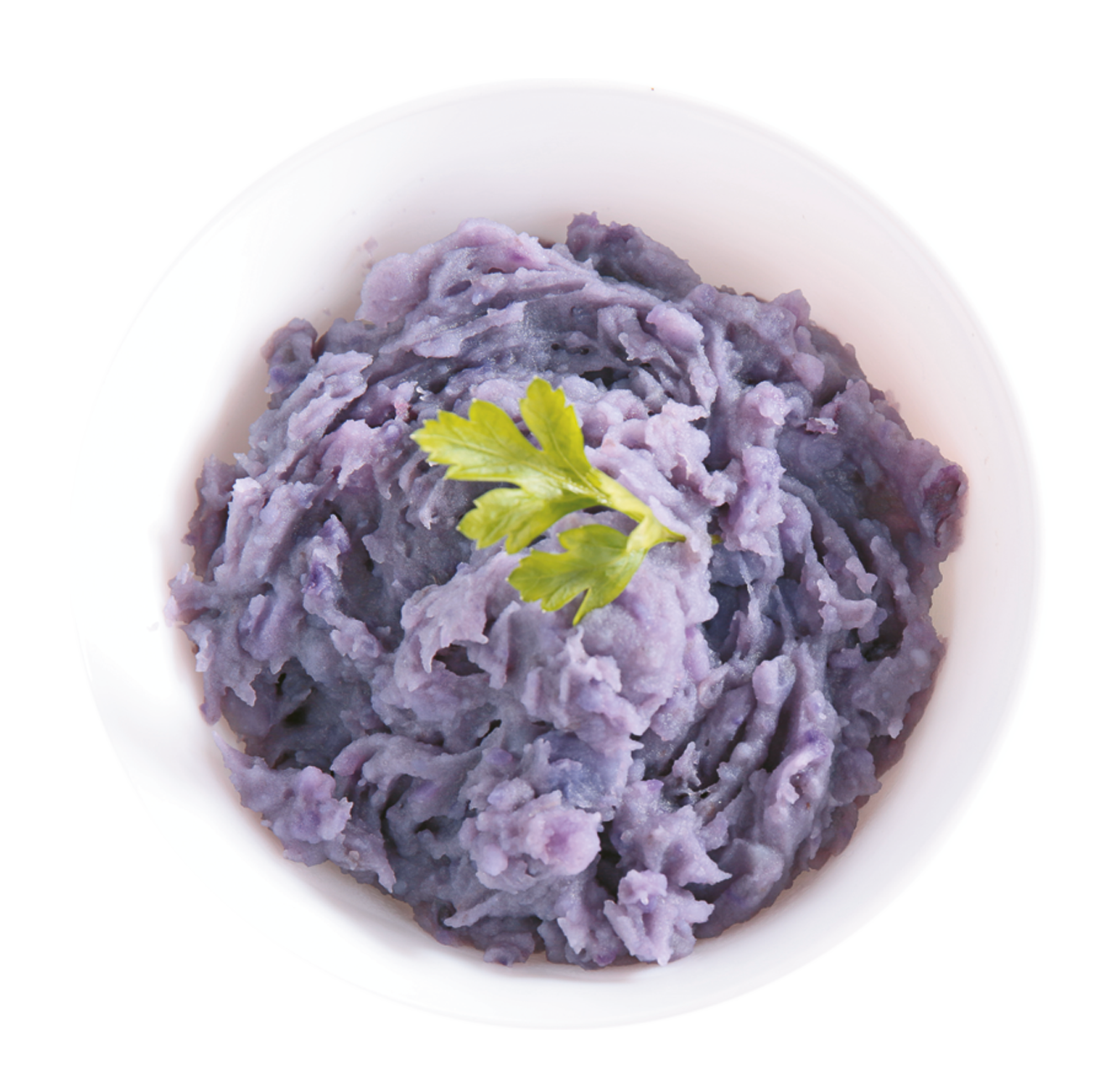 Индивидуални порции от по 10 - 20 g, замразени отделно за по-лесно дозиране и приготвяне от лилави Vitelotte картофи 74,7%, обогатени с крем (мляко), масло и лешниково масло. Кадифена текстура и естествен аромат на картофи с лек орехов нюанс, подходящо за гурме сервиране или професионални кухни.